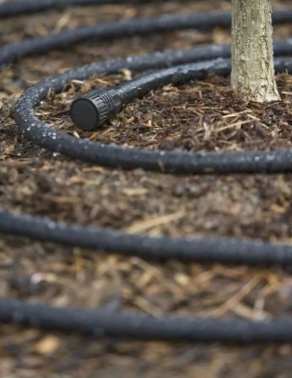 We install this soaker hose watering system to keep your soil and roots happy when you spend less time in your garden.